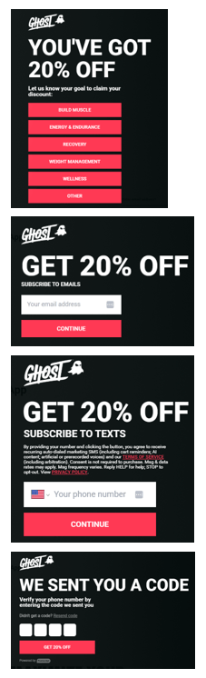 The pop-up is smart. Goal segmentation upfront before the email field is textbook Klaviyo. It lets Ghost tag subscribers by intent before they even enter a single character.