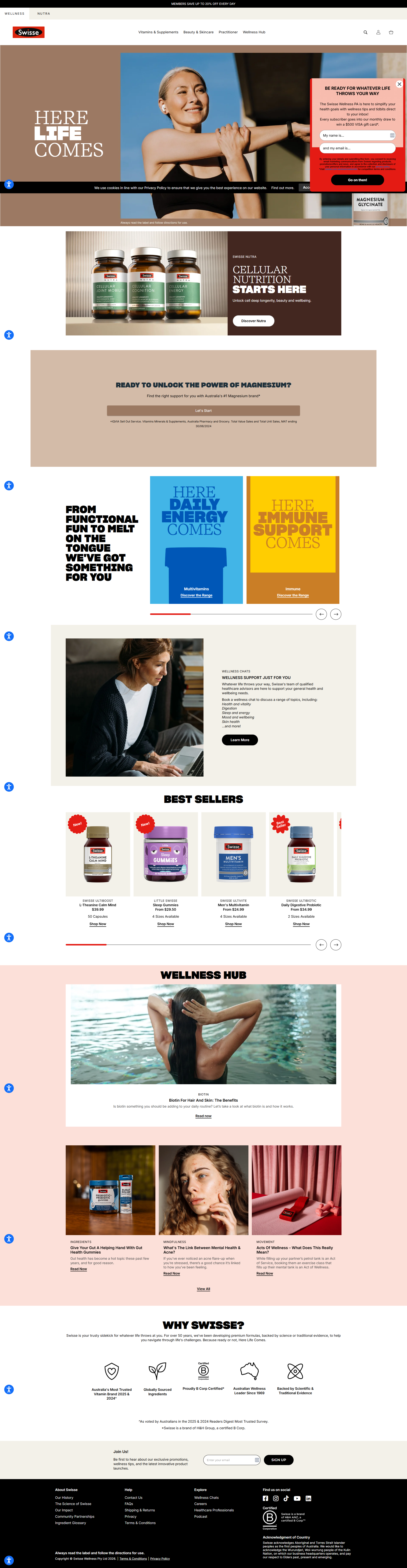 That's a win. Swisse is not losing buyers to a delayed welcome window. The infrastructure is solid.