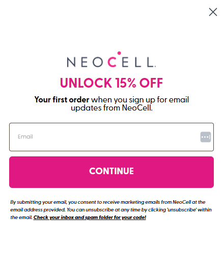At 10:03 PM last night, I signed up on NeoCell's site. I gave them my email. I gave them my phone number too. The pop-up asked for both.