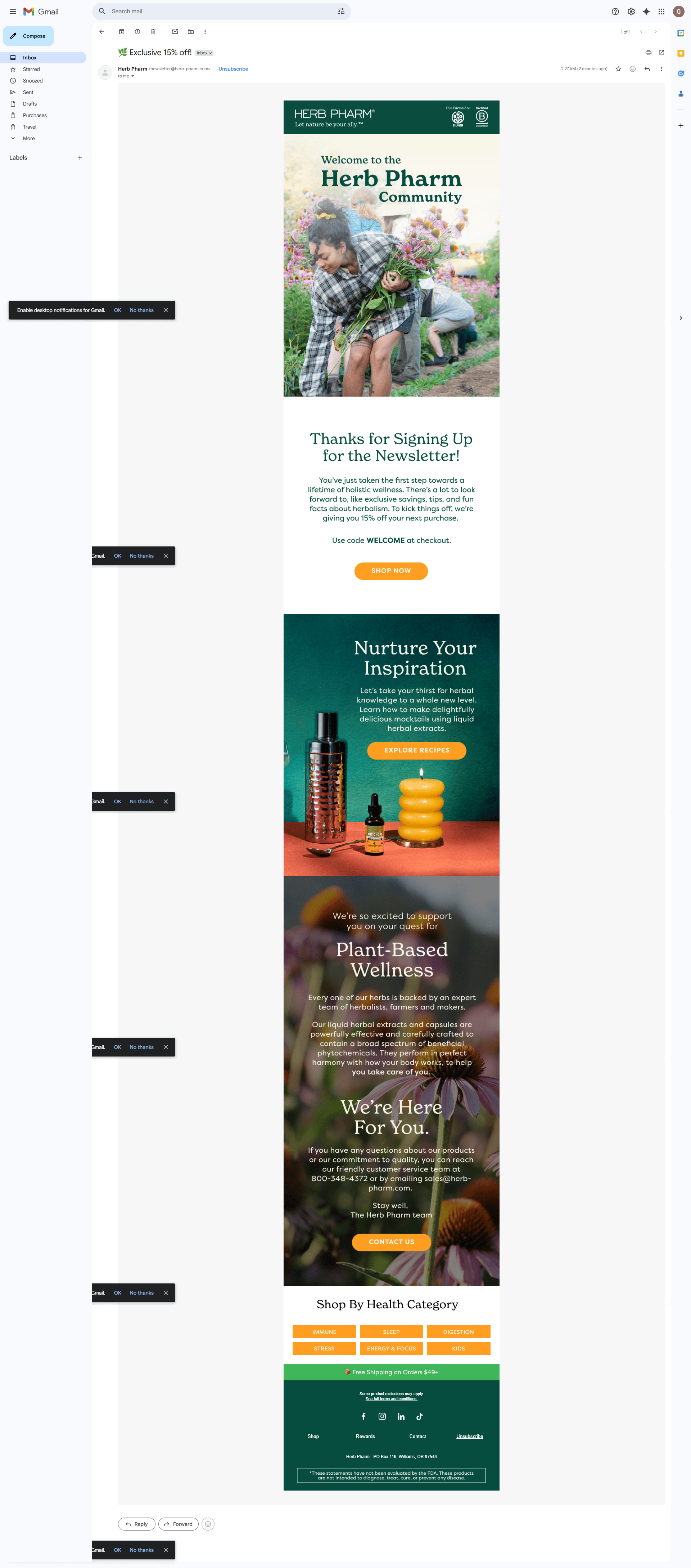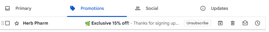 Here's what I'm curious about: if Herb Pharm's welcome email landed in Primary with the WELCOME code above the fold, what does their 7-day conversion rate look like compared to now?