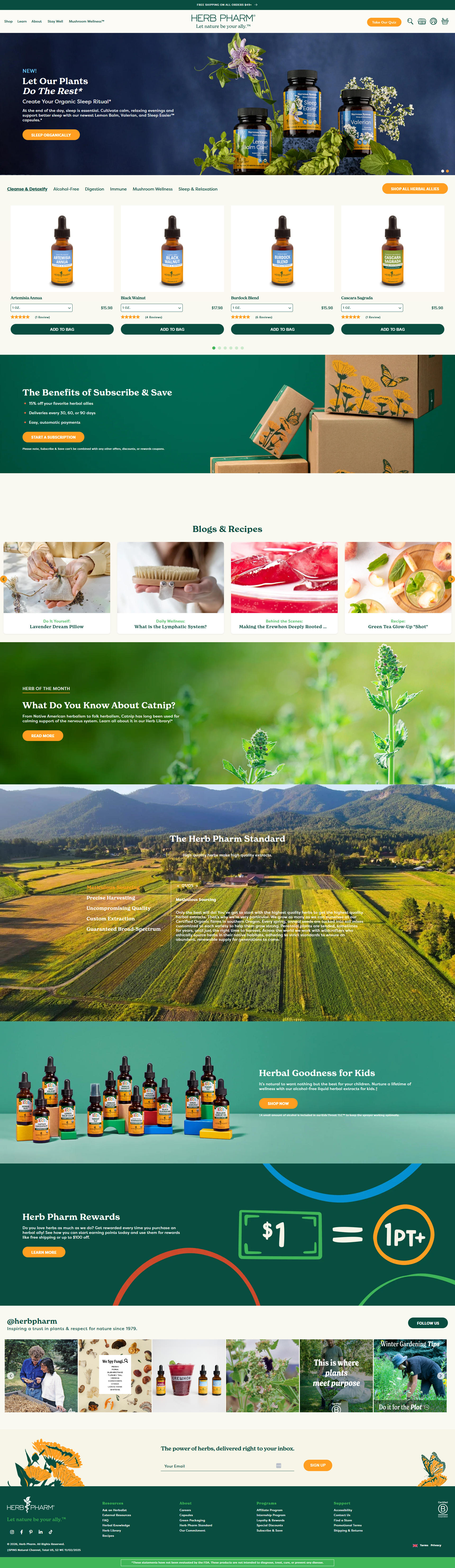 The only way to subscribe is to scroll all the way to the footer. That means Herb Pharm is only capturing the most motivated visitors. The ones who don't scroll that far? They leave without ever joining the list.