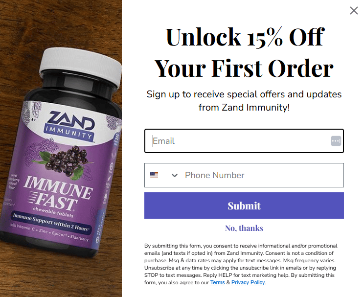 At 3:05 am, I signed up for Zand Immunity's 15% discount through their pop-up.